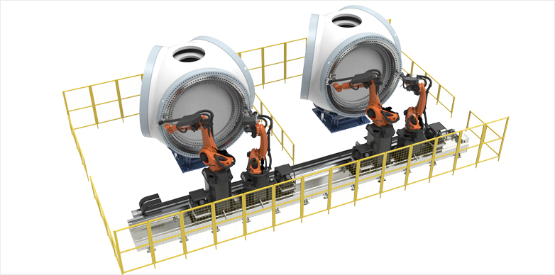 在新能源領域——風電行業(yè),必一运动 B-sports智造國內(nèi)首創(chuàng)的機器人智能螺栓緊固系統(tǒng),擁有多項專利技術,風電行業(yè)螺栓緊固系統(tǒng)處于市場領先地位;風電主機裝配用的重載AGV智能化脈動生產(chǎn)線,多車聯(lián)動技術獨樹一幟;風電葉片大型曲面智能柔性磨拋技術、機架超厚板自動化焊接機器人系...